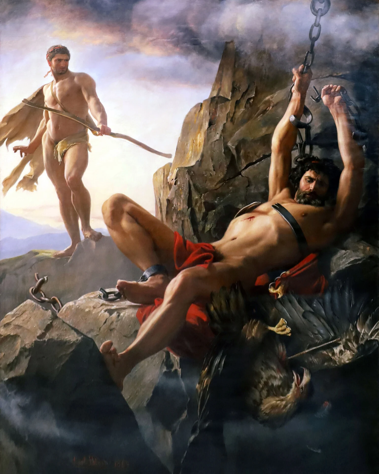 Το έργο απεικονίζει τη στιγμή που ο Ηρακλής έχει μόλις σκοτώσει τον αετό και ο Προμηθέας απελευθερώνεται από τα δεσμά που του έχει επιβάλει ο Δίας. Χαρακτηρίζεται από τη υποβλητική σύνθεση και τον δραματικό σκιοφωτισμό – στοιχεία που απαντούν στην τέχνη τoυ ευρωπαϊκού ρομαντισμού. Η έρευνα γύρω από το έργο και τις συνθήκες της δημιουργίας του αναμένεται να μας δώσει τα κλειδιά για την ερμηνεία των συμβολισμών που ίσως είχε για τον παραγγελιοδότη.